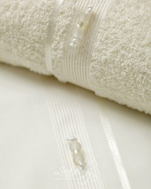 Οι διακριτικές χάντρες ολοκληρώνουν το σύνολο, δημιουργώντας ένα αποτέλεσμα φίνο, λαμπερό και απόλυτα luxury Πετσέτα 80*140*450gr2. Πετσέτα παπά 30*40*450gr2. Όλες οι πετσέτες της Lina Baby φέρουν την ετικέτα STANDARD 100 by OEKO-TEX®