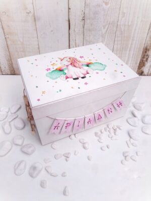 Σετ βάπτισης με χειροποίητο κουτί με θέμα τον μονόκερο