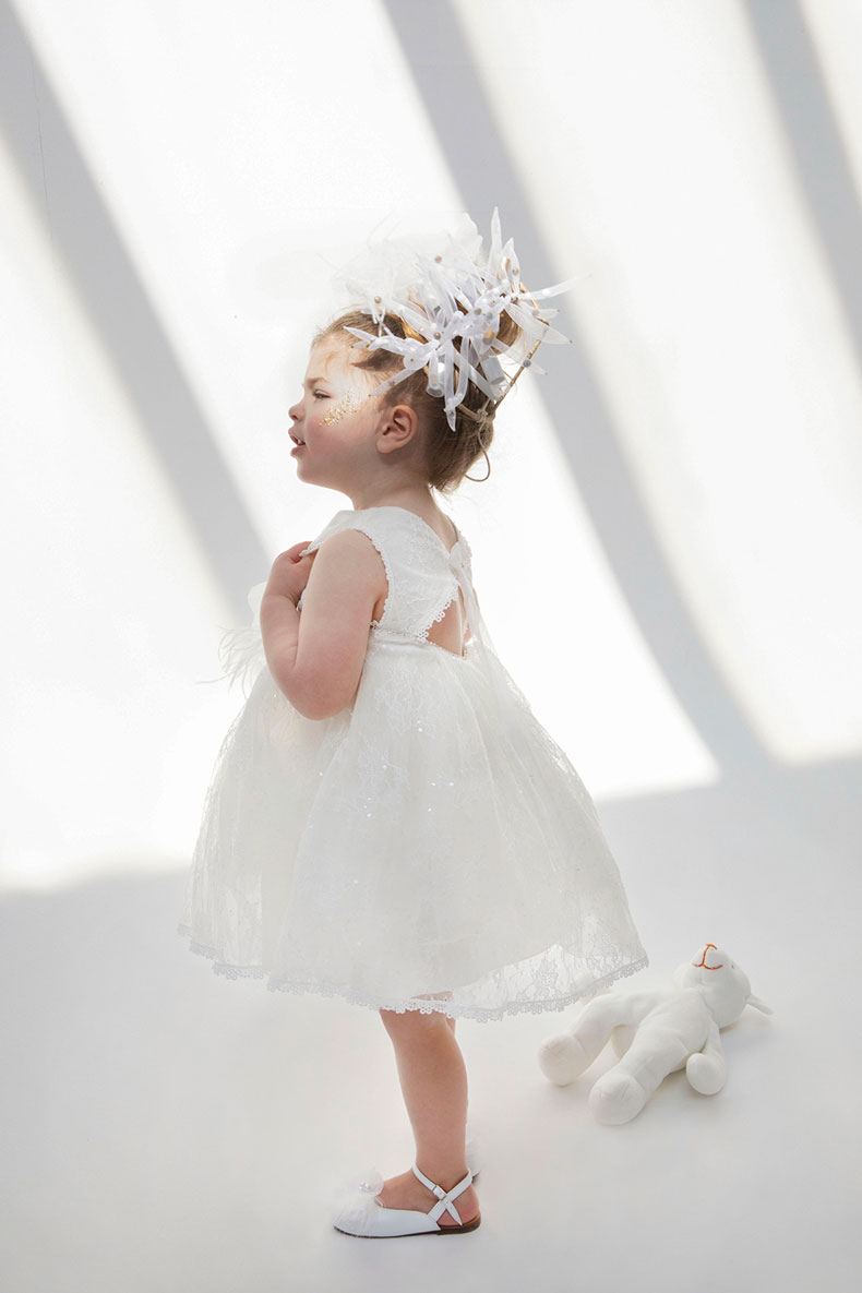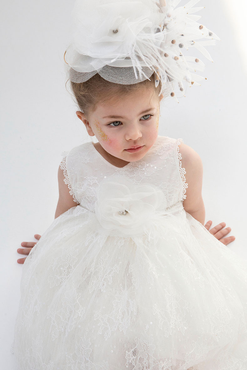 Η Jane είναι ένα ρομαντικό φόρεμα βάπτισης από γαλλική δαντέλα σε ιβουάρ χρώμα.