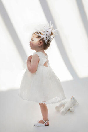 Βαπτιστικό φορεματάκι με glitter και μεγάλο λουλούδι bambolino Jane-9362