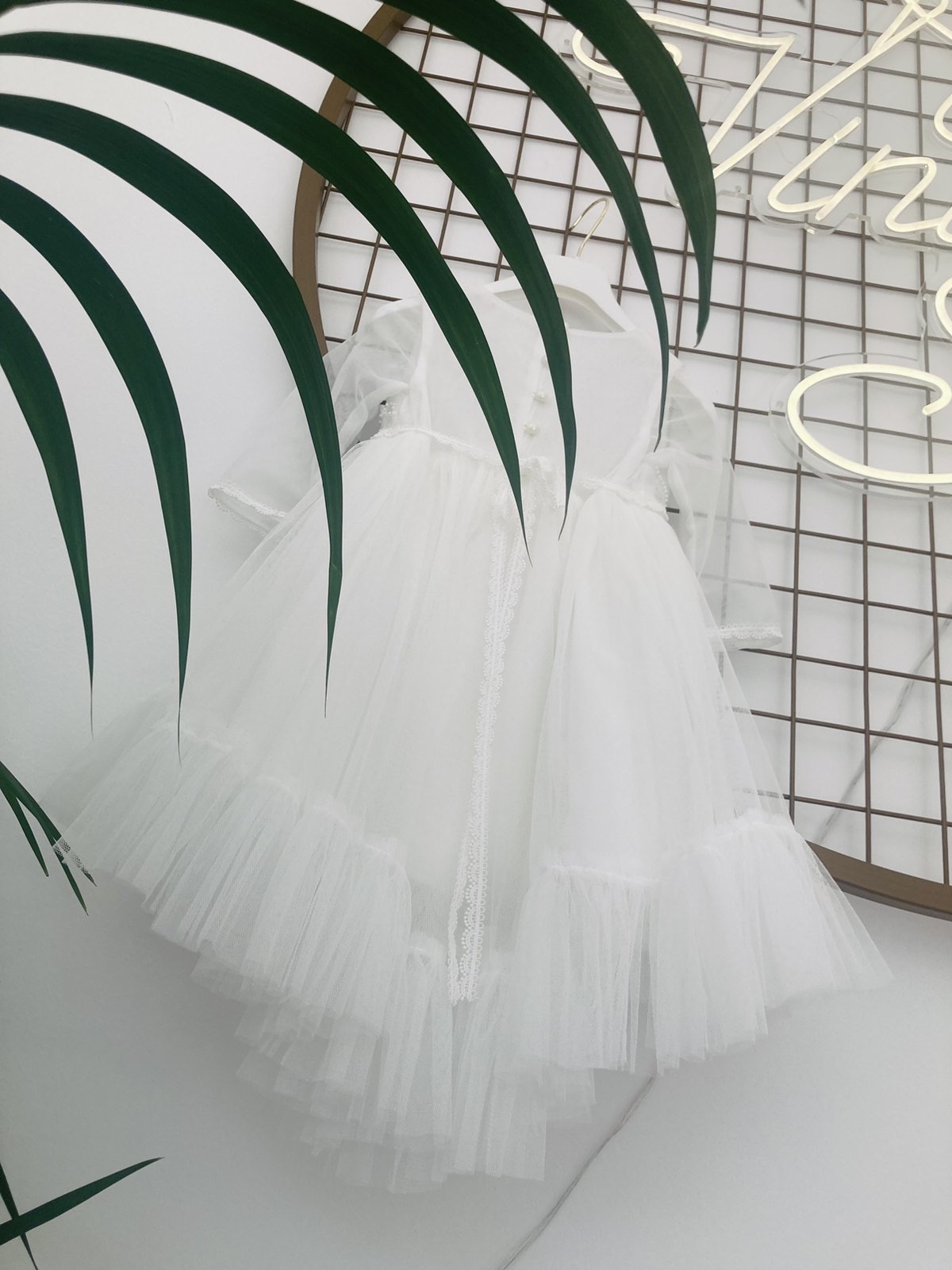 Χειμερινό βαπτιστικό φόρεμα Vintage soul με δαντέλα και τούλινο μανίκι.