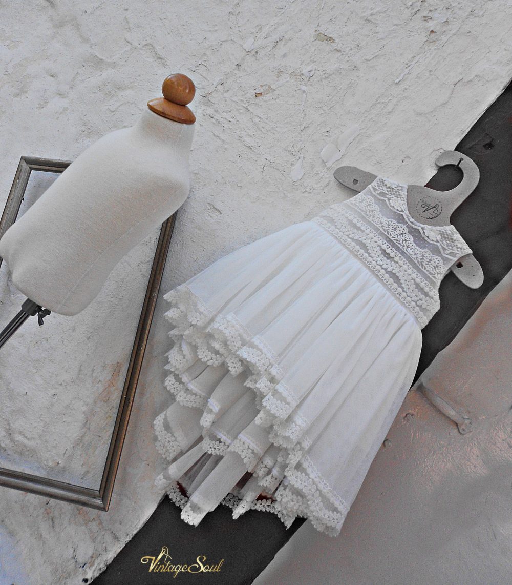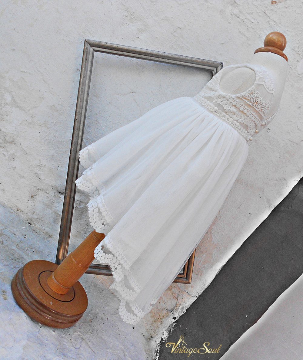 Βαπτιστικό φορεματάκι Vintage soul με απλικέ τρέσα