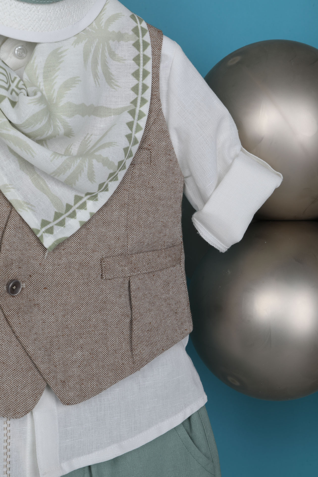 Βαπτιστικό κοστουμάκι Bambolino James σε μέντα- μπεζ απόχρωση.