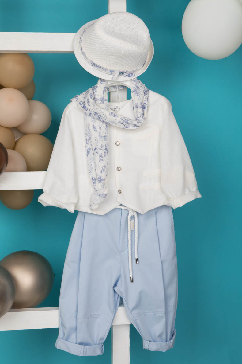 Ο Othonas είναι μία νέα πρόταση για βαπτιστικό σετ με πολύ στυλ και φινέτσα. Αποτελείται από σιέλ καπαρντίνα παντελόνι και λευκό λινό πουκαμισογιλέκο εξαιρετικής ποιότητας.