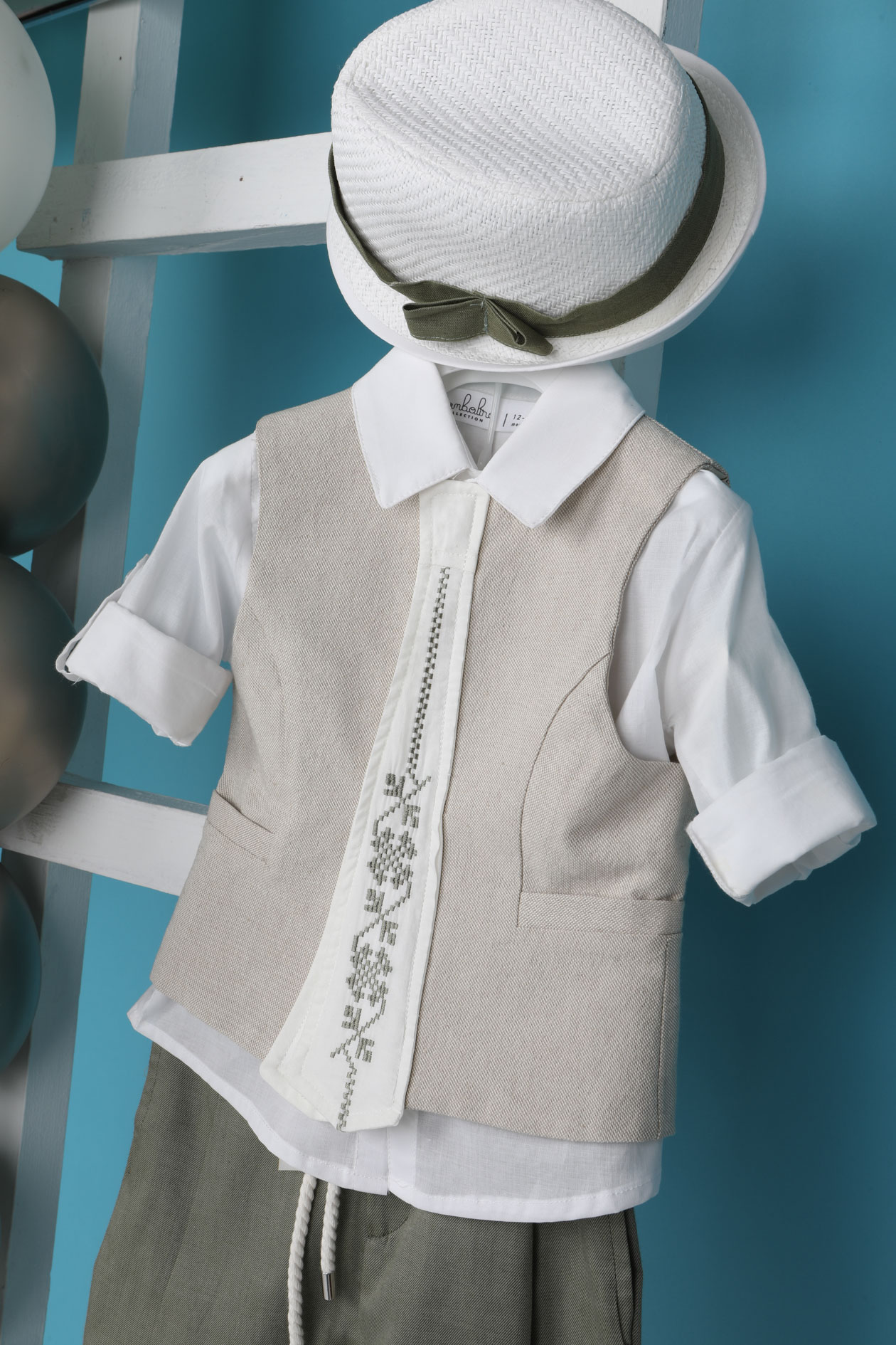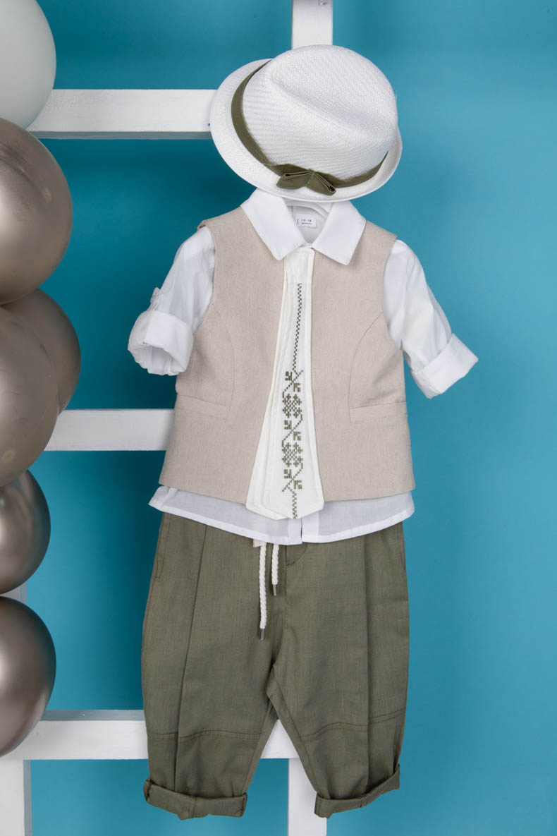 Βαπτιστικό κοστουμάκι Bambolino Roberto σε λαδί με μπεζ.