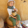 Αποτελείται από μέντα παντελόνι cotton λευκό πουκάμισο και ψάθινο γιλέκο εξαιρετικής ποιότητας.