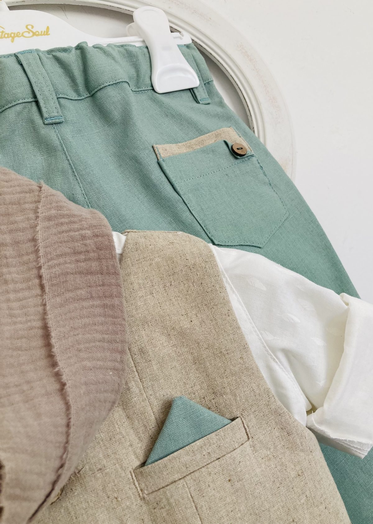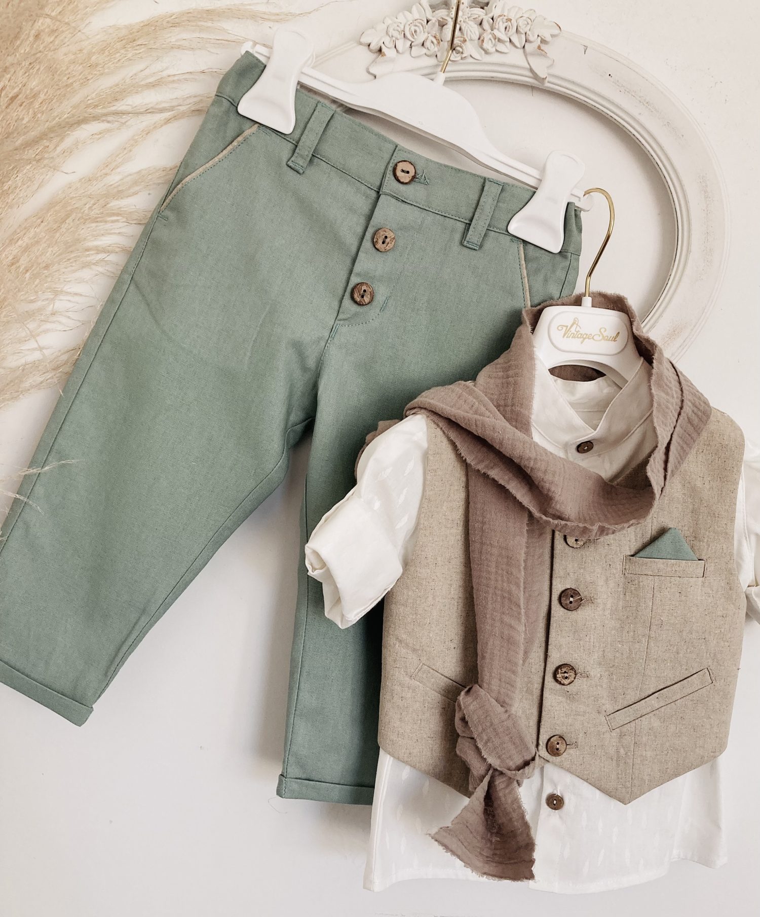 Βαπτιστικό λινό κοστουμάκι vintage soul μέντα με sand