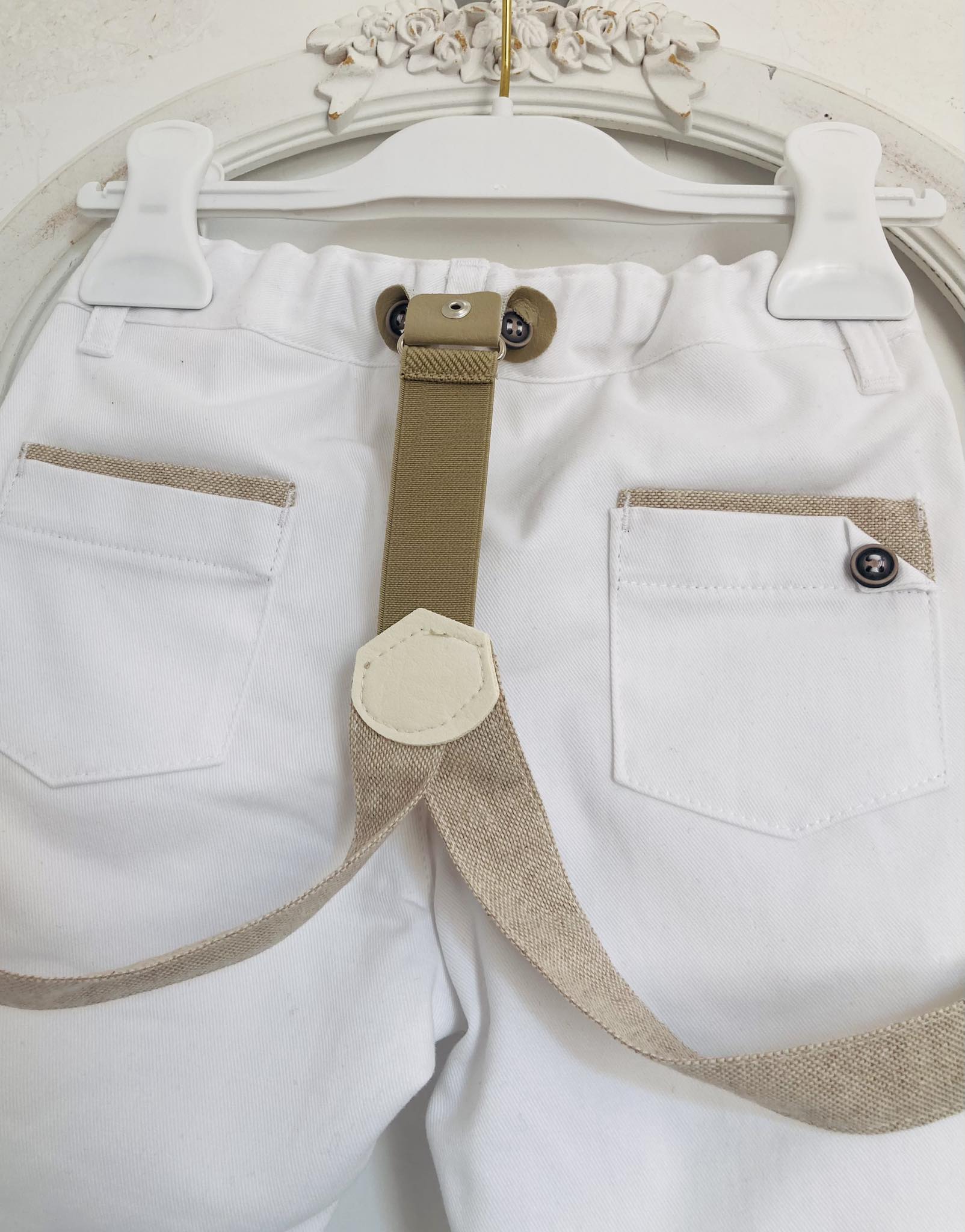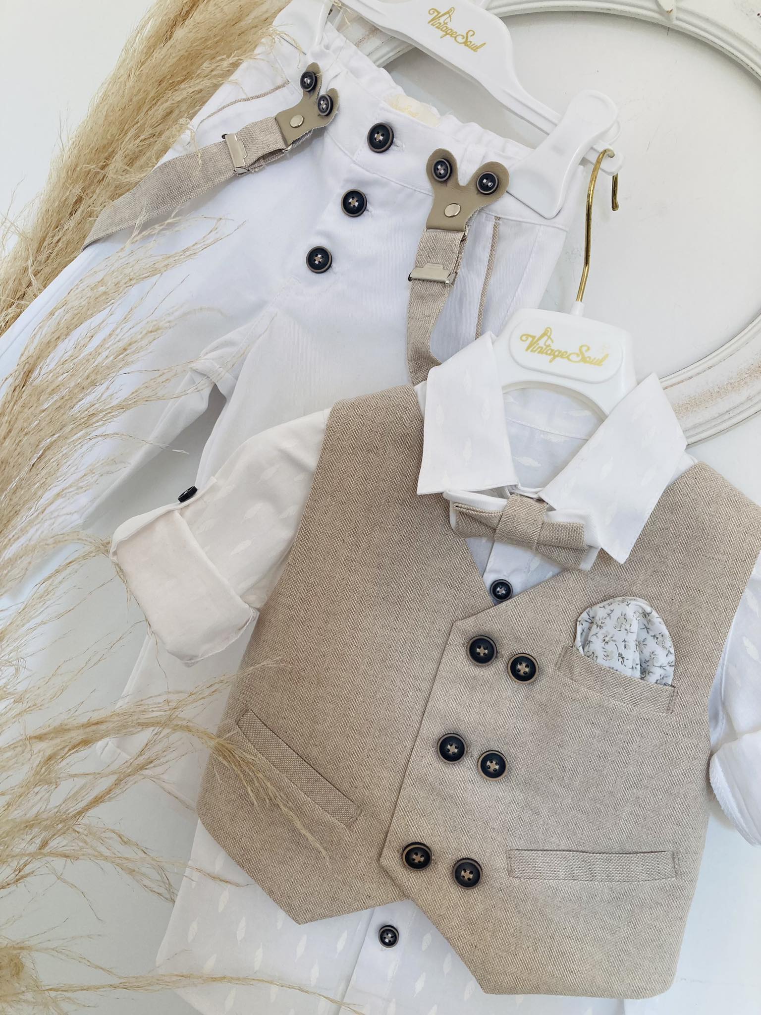 Βαπτιστικό κοστουμάκι Vintage soul σε λευκό και της άμμου