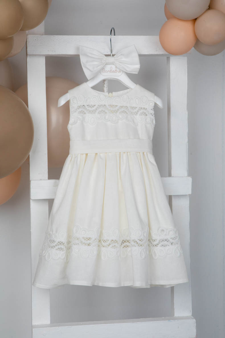 Βαπτιστικό λινό φόρεμα Bambolino Rodopi από λινό εκρού.