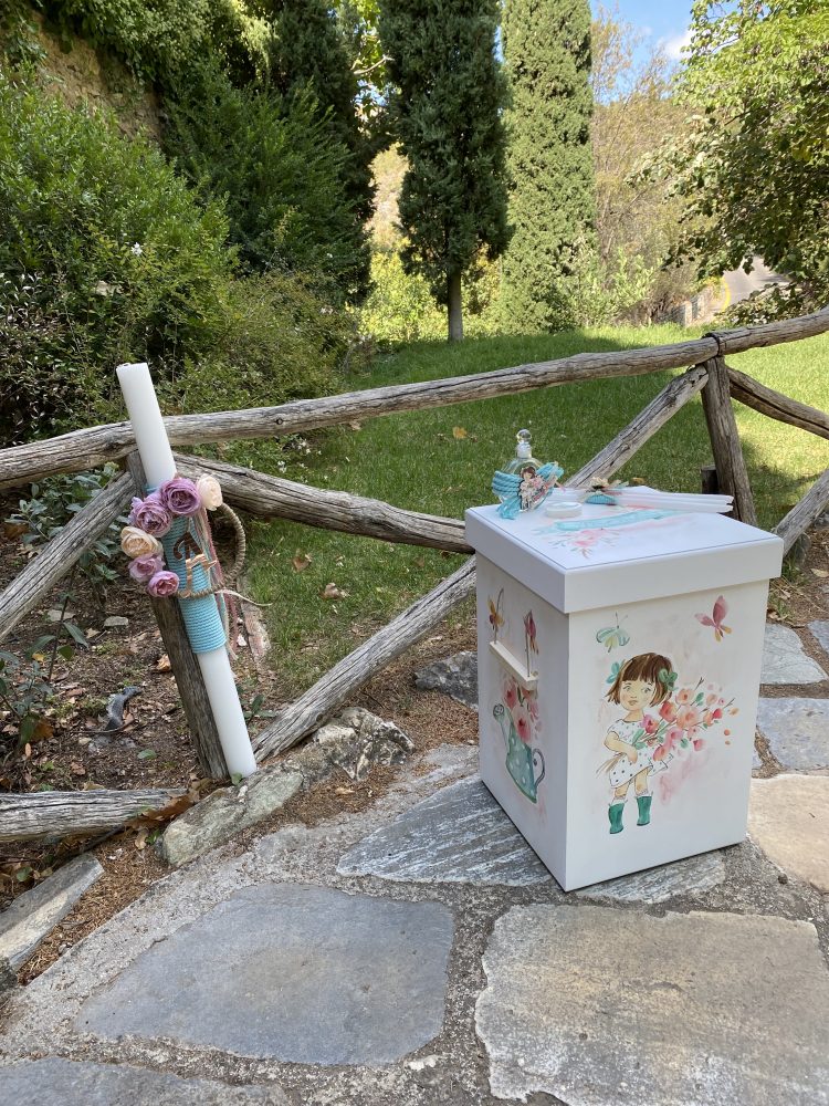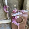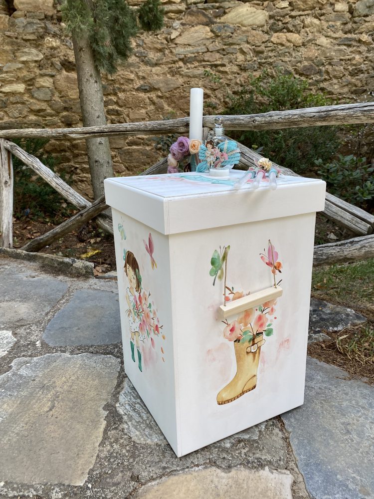 Σετ βάπτισης με ζωγραφισμένο flower girl σε παλ αποχρώσεις του ροζ, βεραμάν και ιβουάρ.