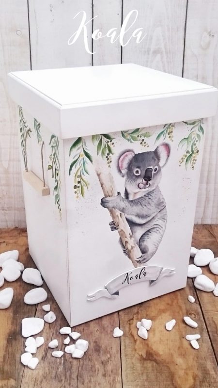 Σετ βάπτισης με θέμα koala με ξύλινο ζωγραφισμένο κουτί.