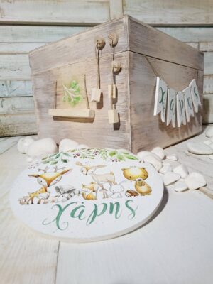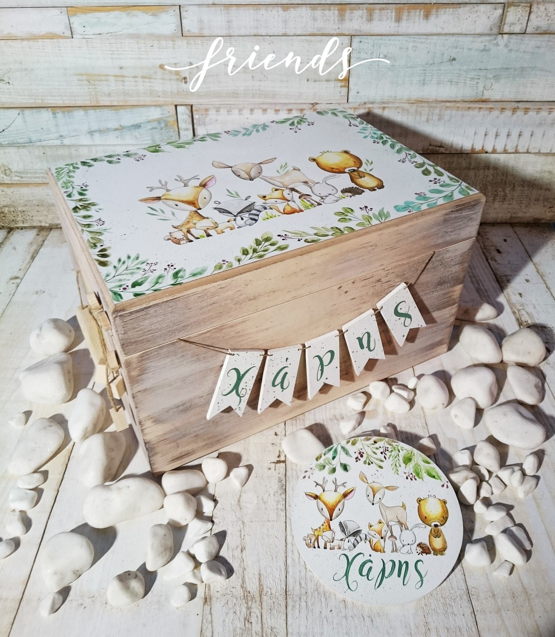 Χειροποίητο Σετ βάπτισης ζωγραφισμένο με ζωάκια του δάσους.
