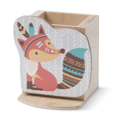 Ξύλινη μολυβοθήκη σε natural χρώμα. Διακοσμημένο με κοπτικό. Η παράσταση είναι αλεπουδάκι σε ethnic αποχρώσεις.
