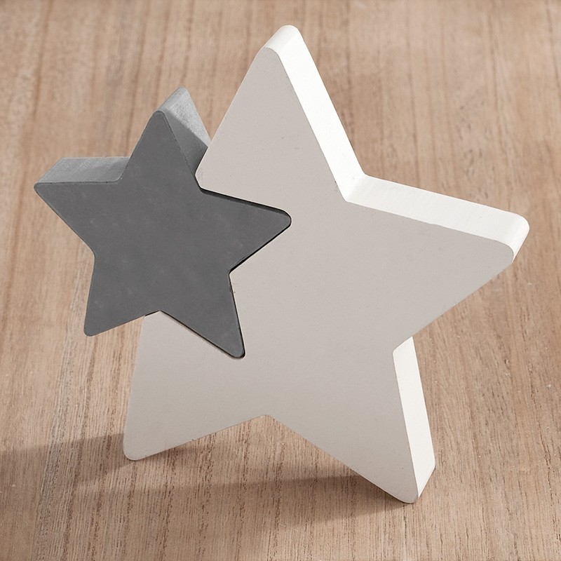 Ξύλινο επιτραπέζιο διπλό διακοσμητικό αστέρι σε σύνθεση και σε απόχρωση λευκή και γκρι